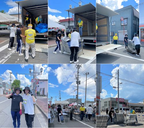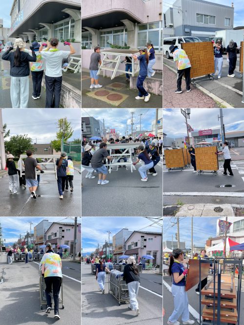 今年は、時より降雨の中の作業となり猛暑とともに苦労しましたが、学生たちは商店会の方々から作業の進め方や大人数による物品の手渡しによる運搬など設営のノウハウを肌で感じていました。